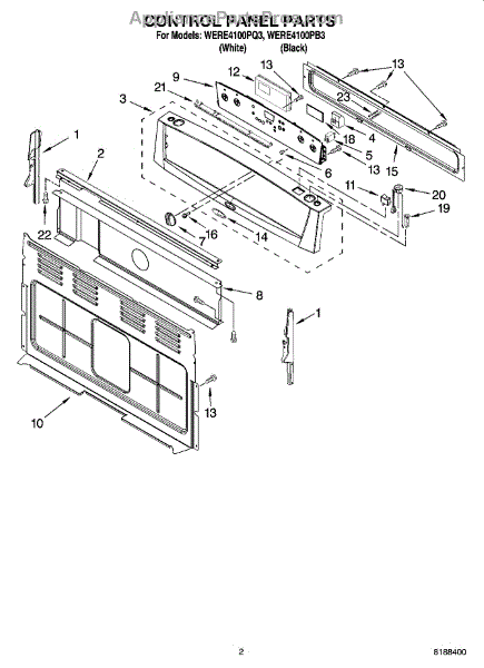 Parts for Whirlpool WERE4100PB3: 02 - Control Panel Parts