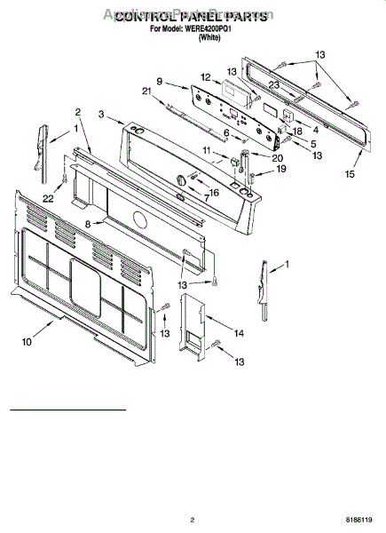 Parts for Whirlpool WERE4200PQ1: 02 - Control Panel Parts