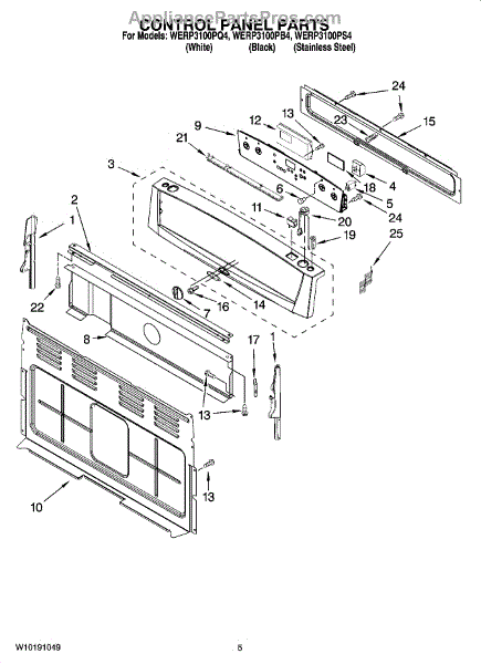 Parts for Whirlpool WERP3100PQ4: 04 - Control Panel Parts