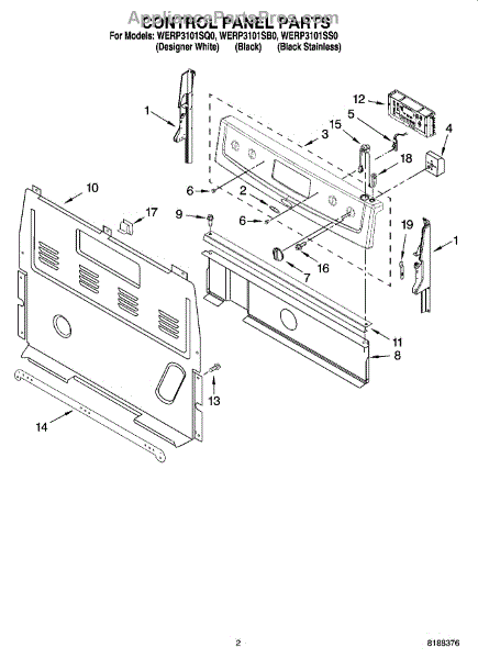 Parts for Whirlpool WERP3101SQ0: 02 - Control Panel Parts