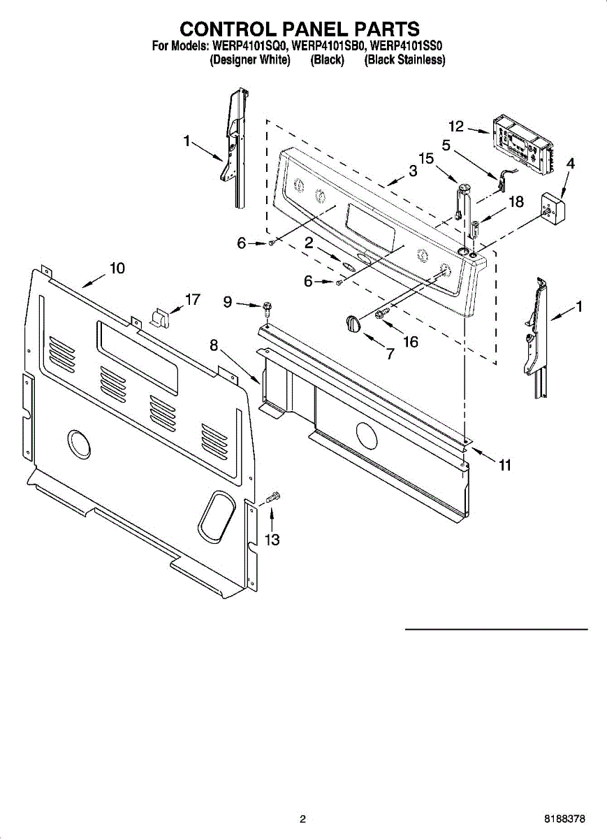 White 8-18 x 3/8 inch screw for electric and gas ranges. Replaces missing, stripped, or damaged screws that secure panels and components.