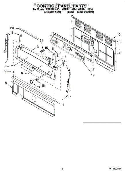 Parts for Whirlpool WERP4110SS1: 02 - Control Panel Parts