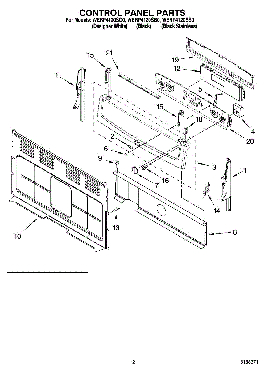 White 8-18 x 3/8 inch screw for electric and gas ranges. Replaces missing, stripped, or damaged screws that secure panels and components.