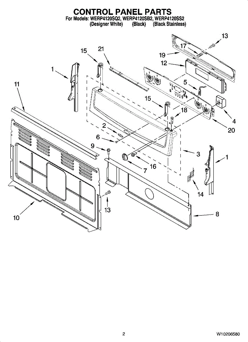 Parts for Whirlpool WERP4120SB2: 02 - Control Panel Parts