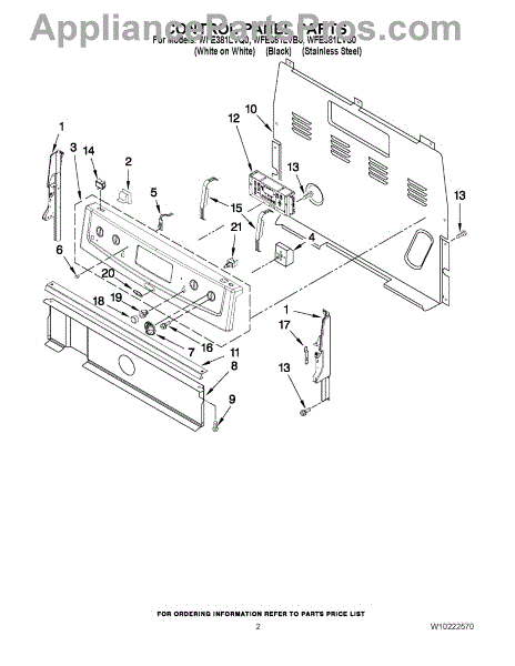 Parts for Whirlpool WFE381LVS0: 02 - Control Panel Parts