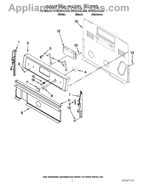 This control bracket secures the appliance control or console assembly, keeping the control board and user interface stable for reliable operation. It helps prevent loose or misaligned controls that can affect button response or display visibility. What it does:
