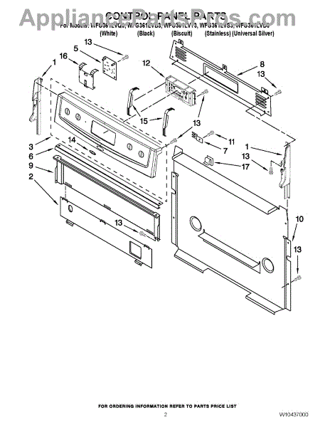 Parts for Whirlpool WFG361LVT3: 02 - Control Panel Parts