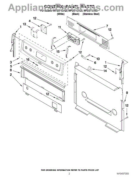 Parts for Whirlpool WFG371LVB3: 02 - Control Panel Parts
