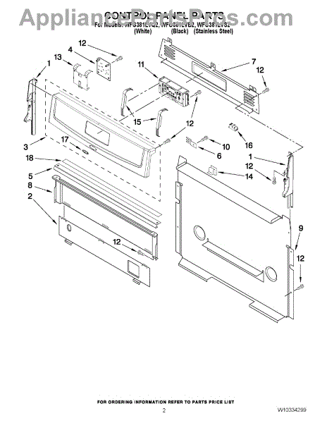 Parts for Whirlpool WFG381LVQ2: 02 - Control Panel Parts