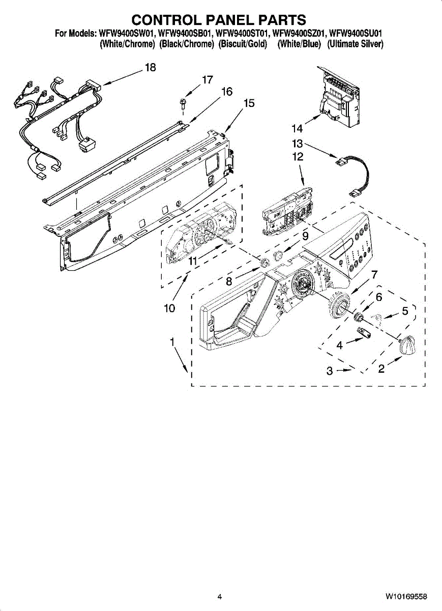 Parts for Whirlpool WFW9400ST01: 03 - Control Panel Parts