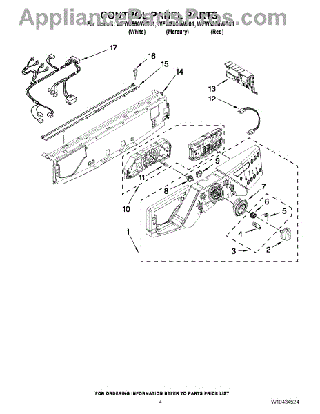 Parts for Whirlpool WFW9550WW01: 03 - Control Panel Parts