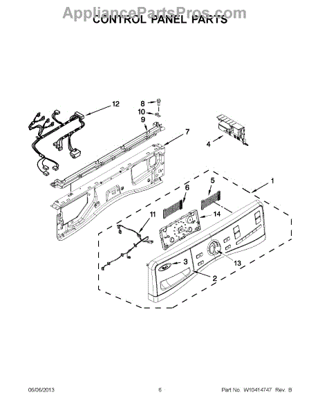 This is a control board for a washing machine. It interacts with all the integral parts of the appliance. It's located inside the washing machine behind the console that has buttons and information about a wash cycle. Through its connection with other components, it controls and monitors all actions the washing machine takes. If this part malfunctions or becomes damaged, it may prevent the washing machine from running. It could also start and stop, refuse to fill with water, or otherwise stop running correctly.To replace the control board, unplug the power cord and disconnect the water supply. Use a nut driver to unthread the screws holding the top panel. Slide it back and lift it up to disconnect the part. Release the control board through its locking tabs. Note where the wires are located before disconnecting them from the malfunctioning control board. Take the new board and attach all the wires to the terminals. Close the covers and align the assembly to install it into the washing machine.Created for use with Whirlpool washing machines, the control board is sold as a single item. It is a genuine OEM replacement part that has been sourced directly from the manufacturer.