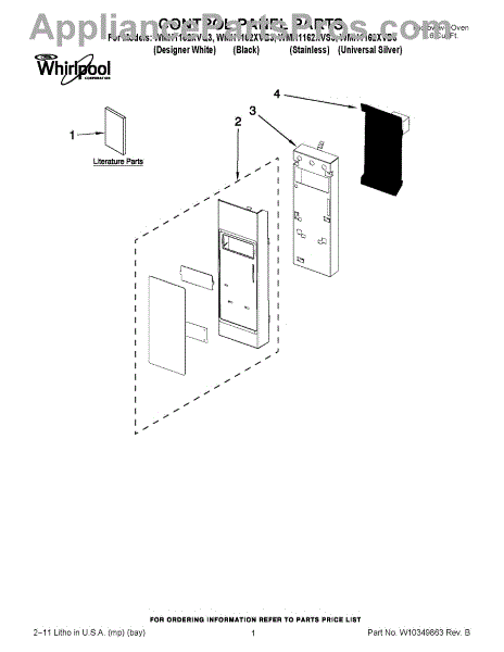 Parts for Whirlpool WMH1162XVB3: 01 - Control Panel Parts