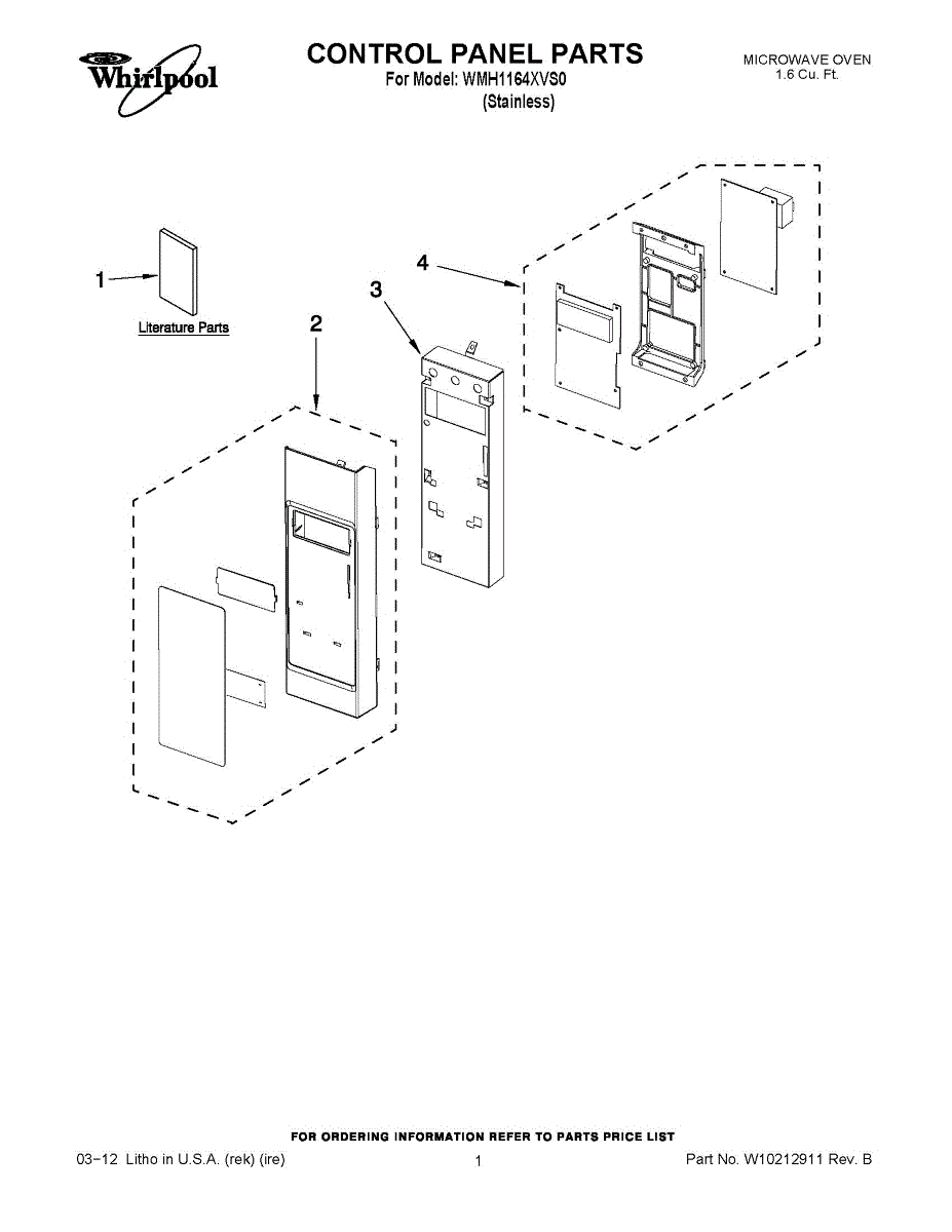 Parts for Whirlpool WMH1164XVS0: 01 - Control Panel Parts