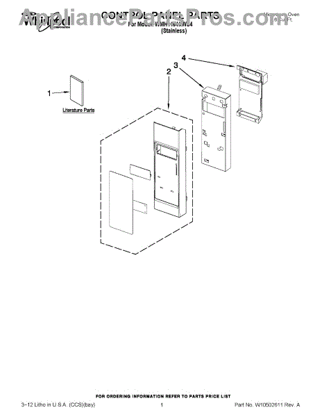 Parts for Whirlpool WMH1164XWS4: 01 - Control Panel Parts