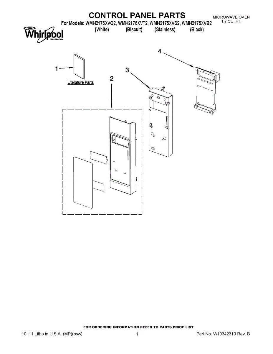 Parts for Whirlpool WMH2175XVB2: 01 - Control Panel Parts
