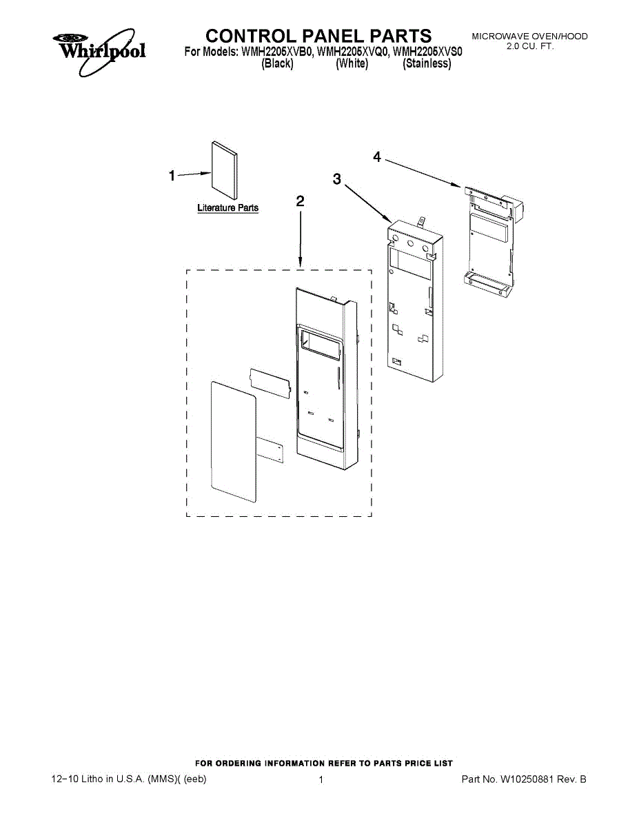 Parts for Whirlpool WMH2205XVB0: 01 - Control Panel Parts