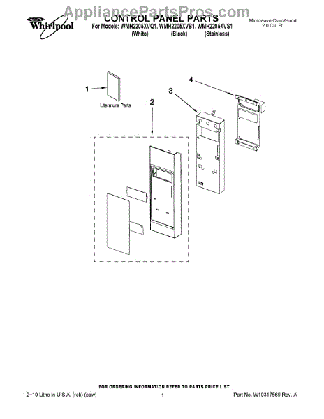 Parts for Whirlpool WMH2205XVQ1: 01 - Control Panel Parts
