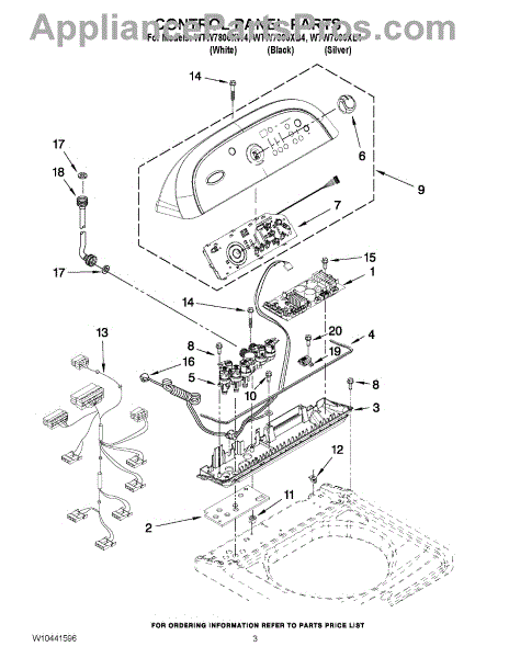 Wire harness for washers. Connects electrical components inside the control system. Replace if damaged, frayed, or connections are loose or corroded.