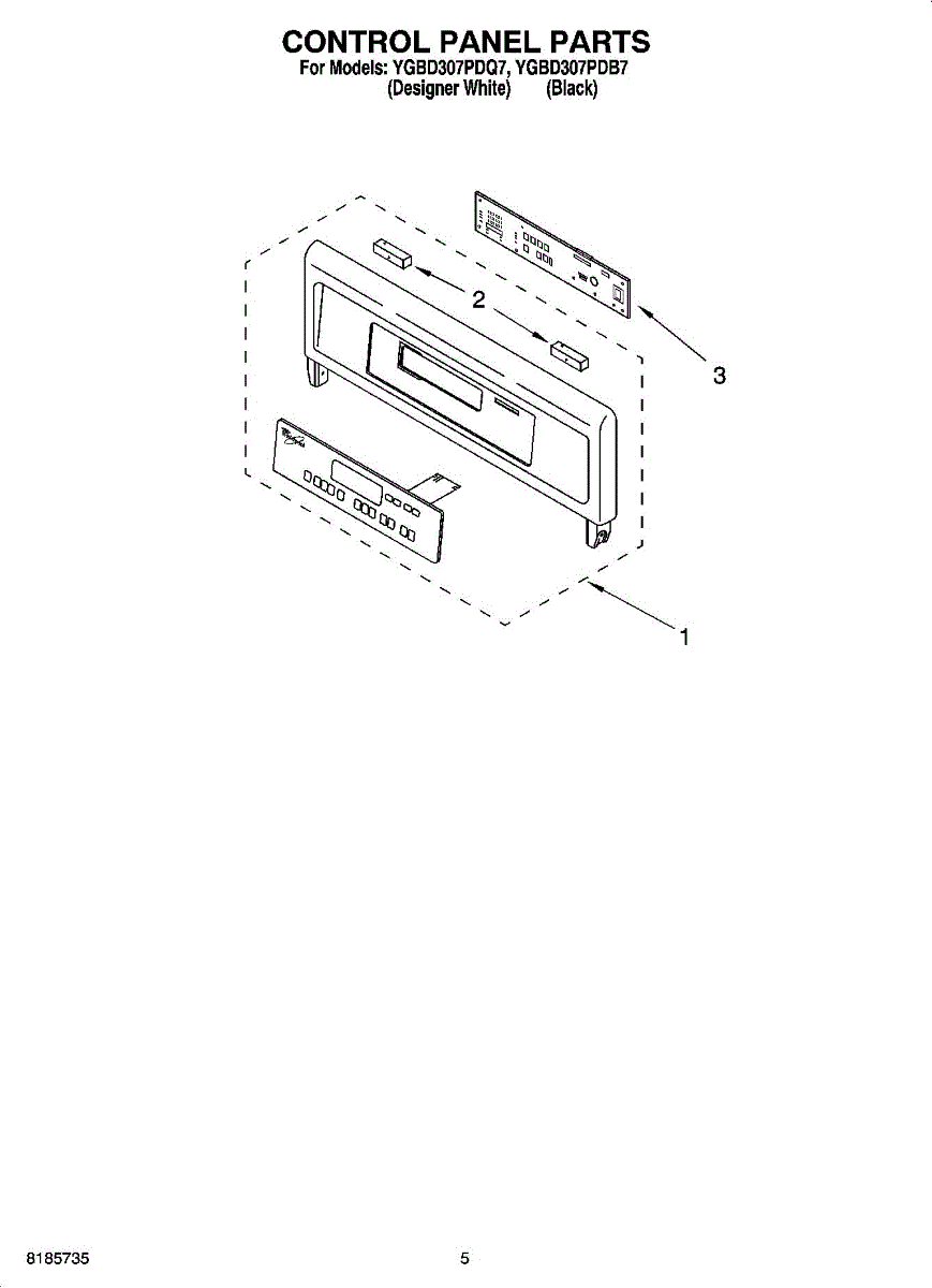 Parts for Whirlpool YGBD307PDB7: 03 - Control Panel Parts