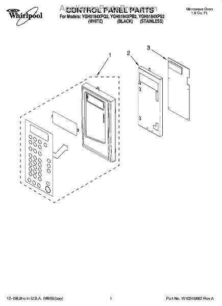 Parts for Whirlpool YGH5184XPQ2: 01 - Control Panel Parts