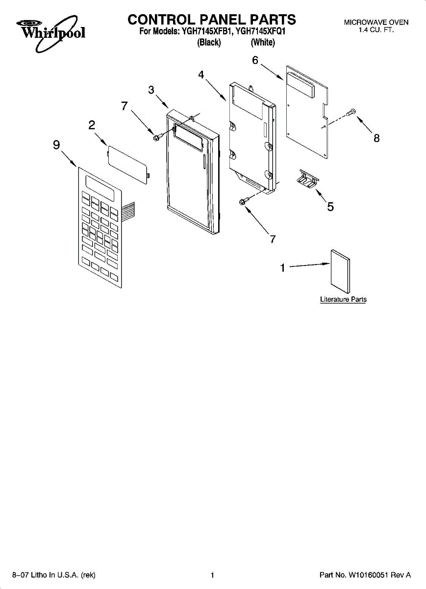Parts for Whirlpool YGH7145XFB1: 01 - Control Panel Parts