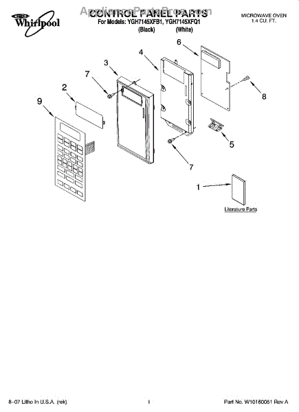 Parts for Whirlpool YGH7145XFQ1: 01 - Control Panel Parts