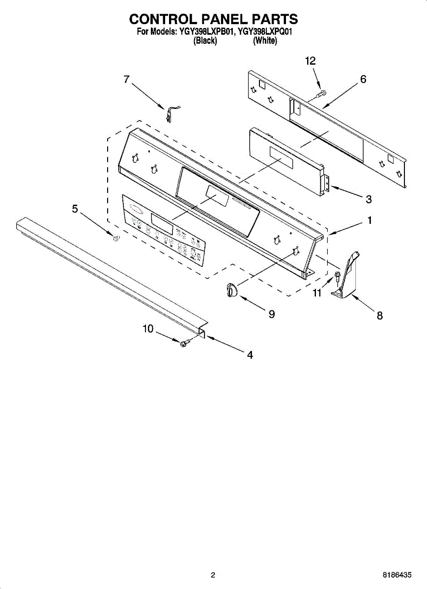 Parts for Whirlpool YGY398LXPQ01: 02 - Control Panel Parts