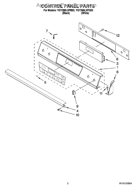 Parts for Whirlpool YGY398LXPQ02: 02 - Control Panel Parts