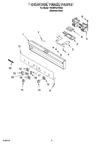 Control knob for range selector dial. Installs on the control panel to replace worn, cracked, broken, or missing knobs. Restores grip and detent feedback.