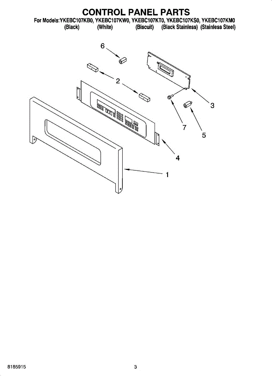 Parts for Whirlpool YKEBC107KM0: 02 - Control Panel Parts