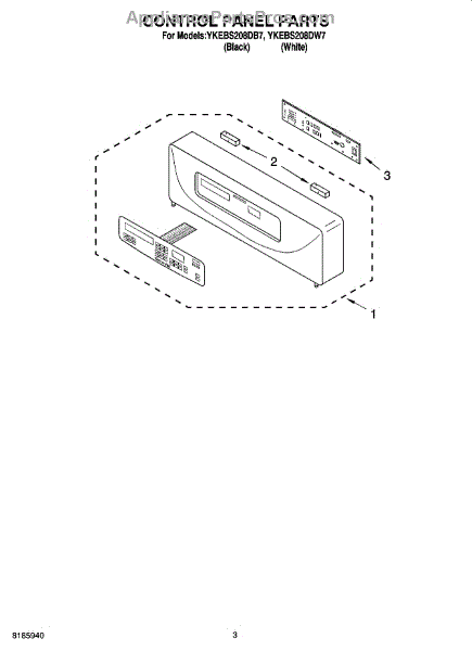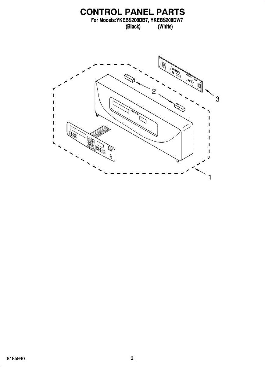 Parts for Whirlpool YKEBS208DB7: 02 - Control Panel Parts