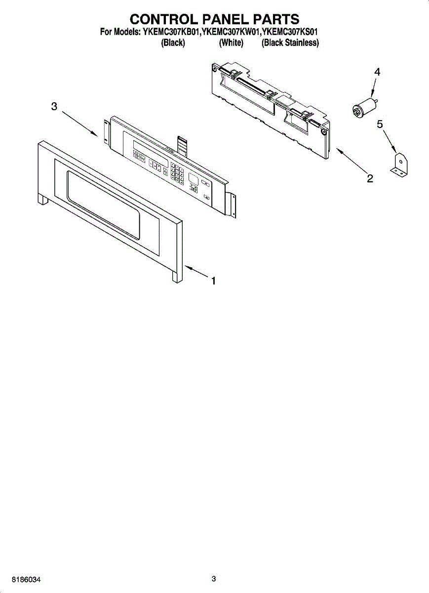 Parts for Whirlpool YKEMC307KB01: 02 - Control Panel Parts