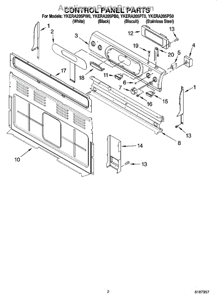 Parts for Whirlpool YKERA205PT0: 02 - Control Panel Parts