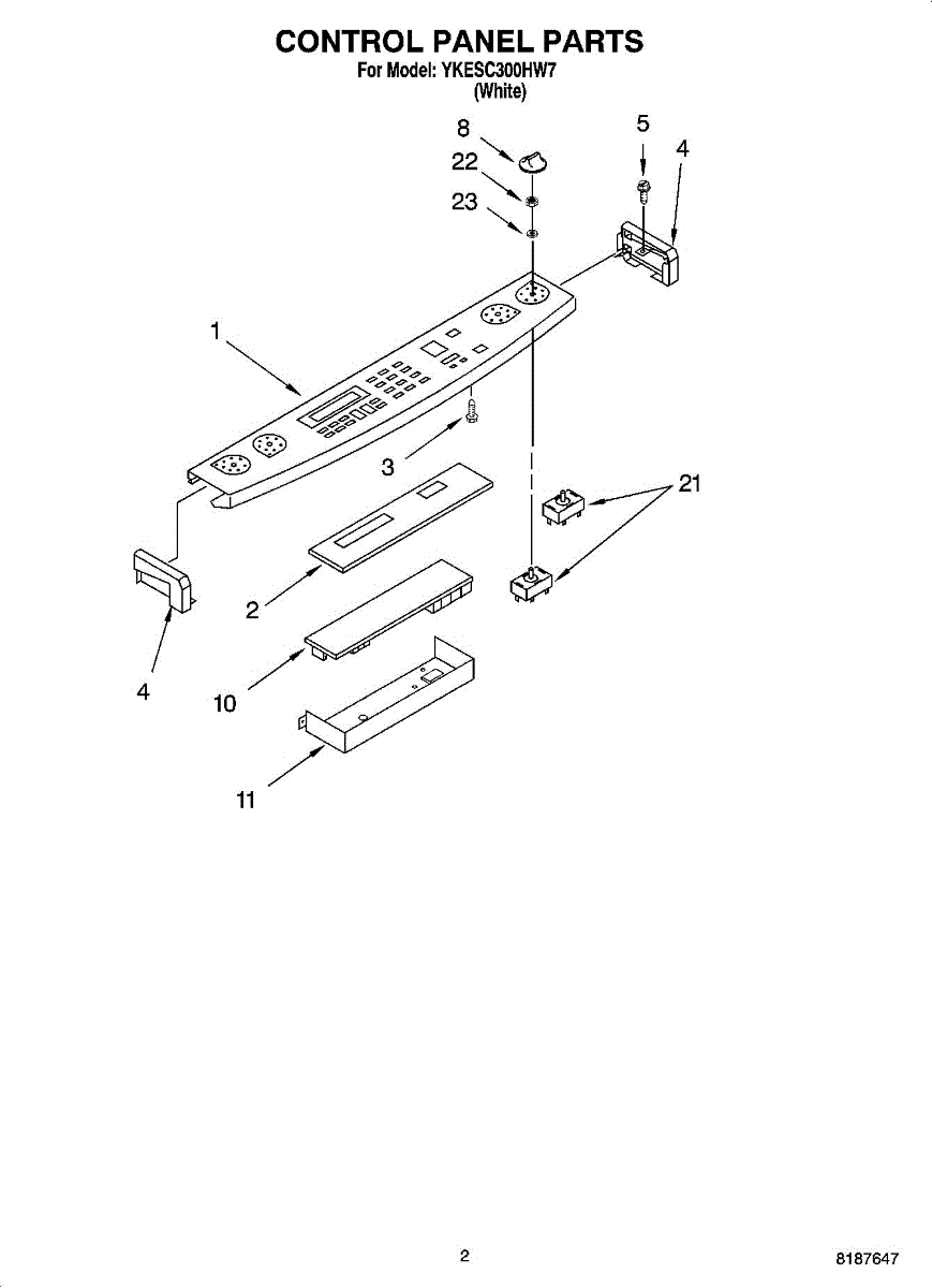 White control knob for electric cooktop burners. Replaces cracked, broken, or missing knobs. Installs on the front control panel for burner operation.
