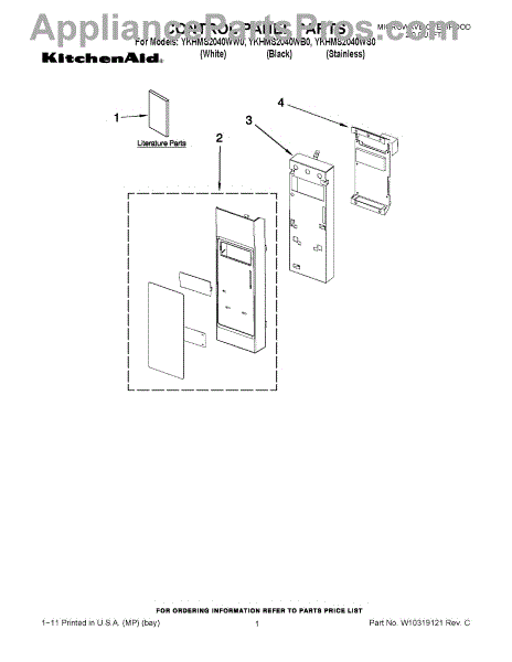 Parts for Whirlpool YKHMS2040WW0: 01 - Control Panel Parts