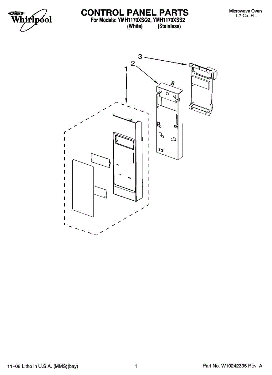 Parts for Whirlpool YMH1170XSQ2: 01 - Control Panel Parts