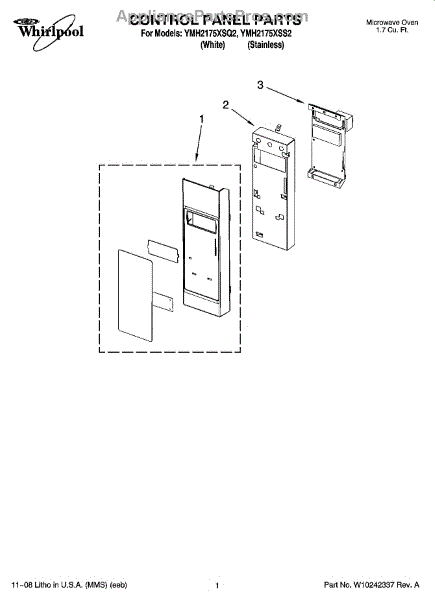 Parts for Whirlpool YMH2175XSS2: 01 - Control Panel Parts