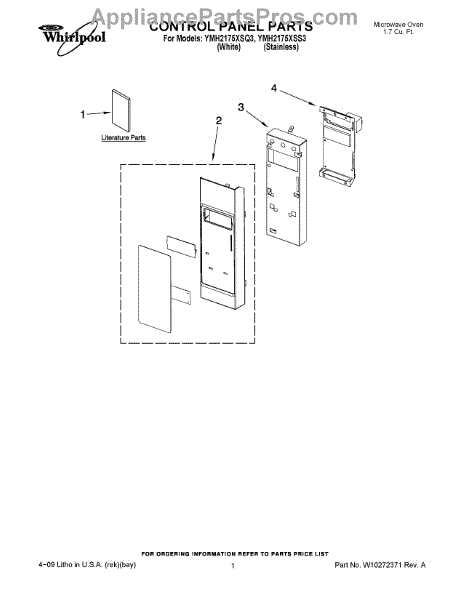 Parts for Whirlpool YMH2175XSS3: 01 - Control Panel Parts