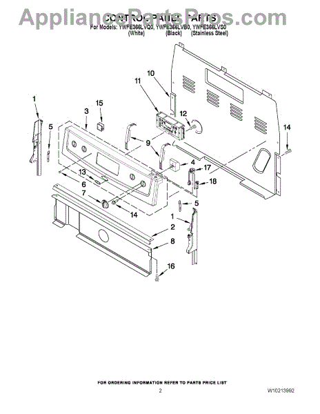 Parts for Whirlpool YWFE366LVQ0: 02 - Control Panel Parts