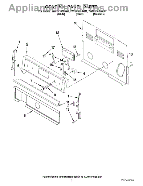 Parts for Whirlpool YWFE510S0AB0: 02 - Control Panel Parts
