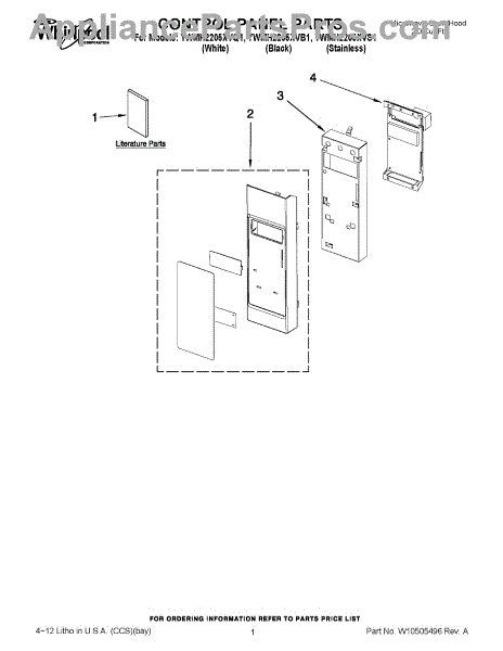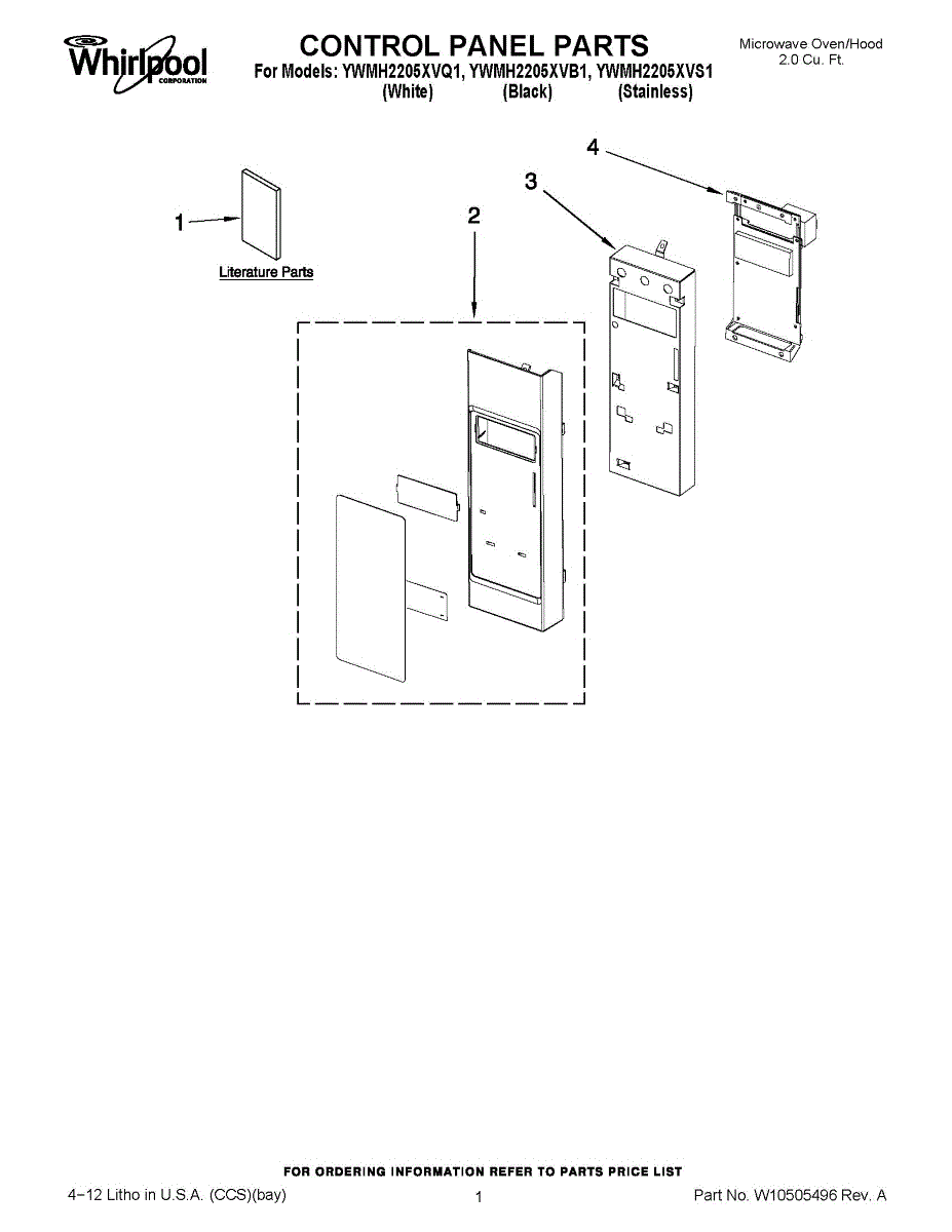 Parts for Whirlpool YWMH2205XVB1: 01 - Control Panel Parts