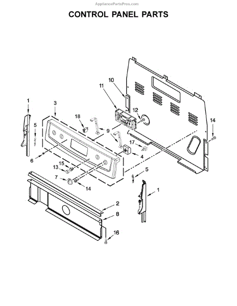 This control bracket secures the appliance control or console assembly, keeping the control board and user interface stable for reliable operation. It helps prevent loose or misaligned controls that can affect button response or display visibility. What it does: