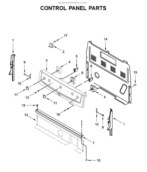 This control bracket secures the appliance control or console assembly, keeping the control board and user interface stable for reliable operation. It helps prevent loose or misaligned controls that can affect button response or display visibility. What it does: