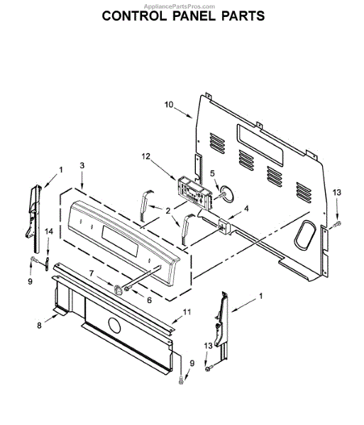 This control bracket secures the appliance control or console assembly, keeping the control board and user interface stable for reliable operation. It helps prevent loose or misaligned controls that can affect button response or display visibility. What it does: