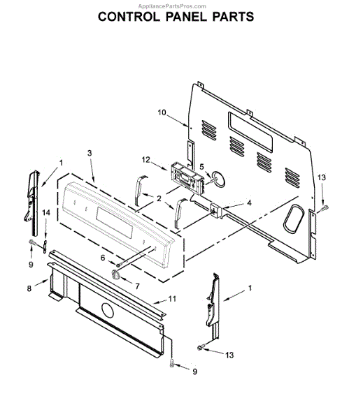 This control bracket secures the appliance control or console assembly, keeping the control board and user interface stable for reliable operation. It helps prevent loose or misaligned controls that can affect button response or display visibility. What it does: