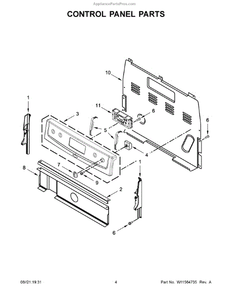 This control bracket secures the appliance control or console assembly, keeping the control board and user interface stable for reliable operation. It helps prevent loose or misaligned controls that can affect button response or display visibility. What it does: