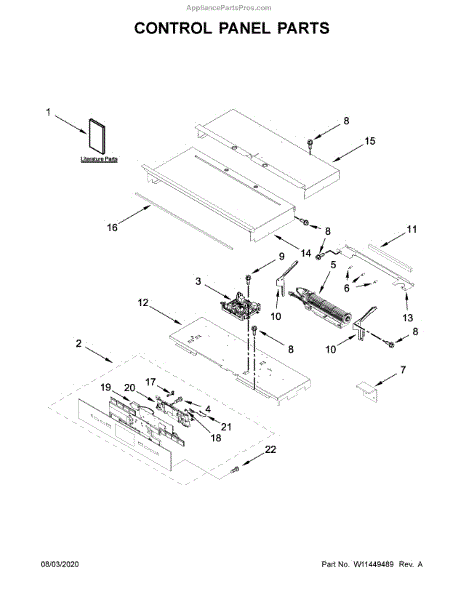 This console is the control panel housing for your appliance's user interface, providing a secure mounting for buttons and display while restoring full control and appearance to the front of the unit. What it does: