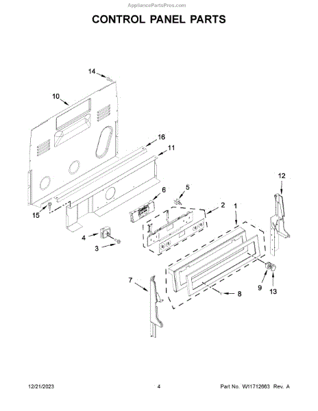 This control bracket secures the appliance control or console assembly, keeping the control board and user interface stable for reliable operation. It helps prevent loose or misaligned controls that can affect button response or display visibility. What it does: