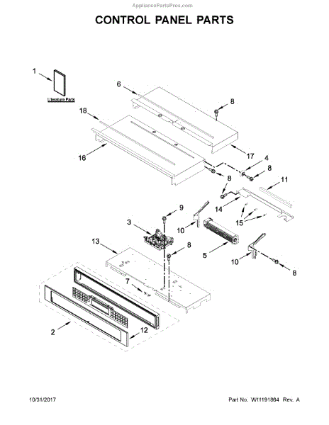 The Console is an OEM part for Whirlpool wall ovens. The console houses the user interface including buttons, knobs, and display. It commands all functionality such as temperature selection, cooking modes, timer settings, and power options.